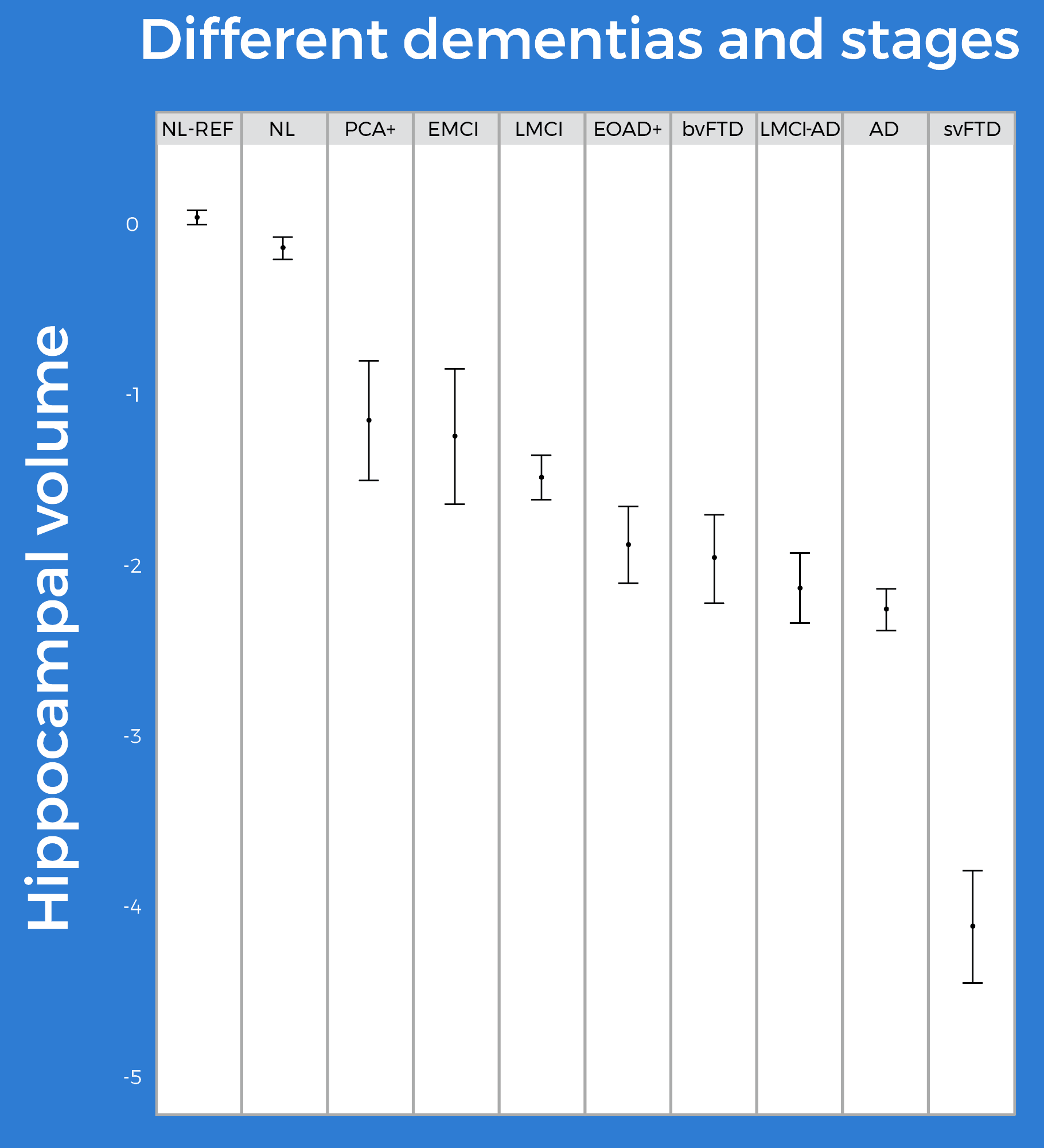 Volumes measured by CorInsights® MRI have been tested using cognitively normal, amyloid-negative subject scans, as well as data sets expected to have volumes in certain region combinations below the normative range based upon well-established literature. Our data sets include individuals with amyloid status confirmation and clinical diagnoses of: